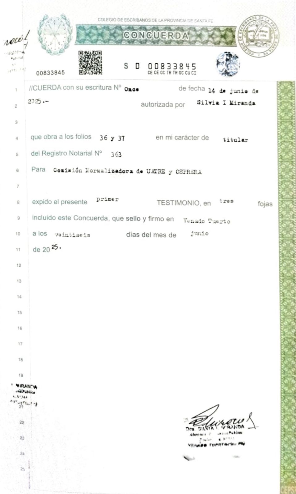 El pasado 14 de junio de 2025, en la localidad santafesina de Melincué, se desarrolló la Asamblea Nacional del Órgano de Control de UATRE, OSPRERA y RENATRE, en el marco de la inauguración de una nueva seccional local. Durante la jornada, se formalizó la puesta en funciones de las autoridades nacionales del órgano, en un acto que reafirma el rumbo de transparencia y compromiso asumido a nivel nacional.